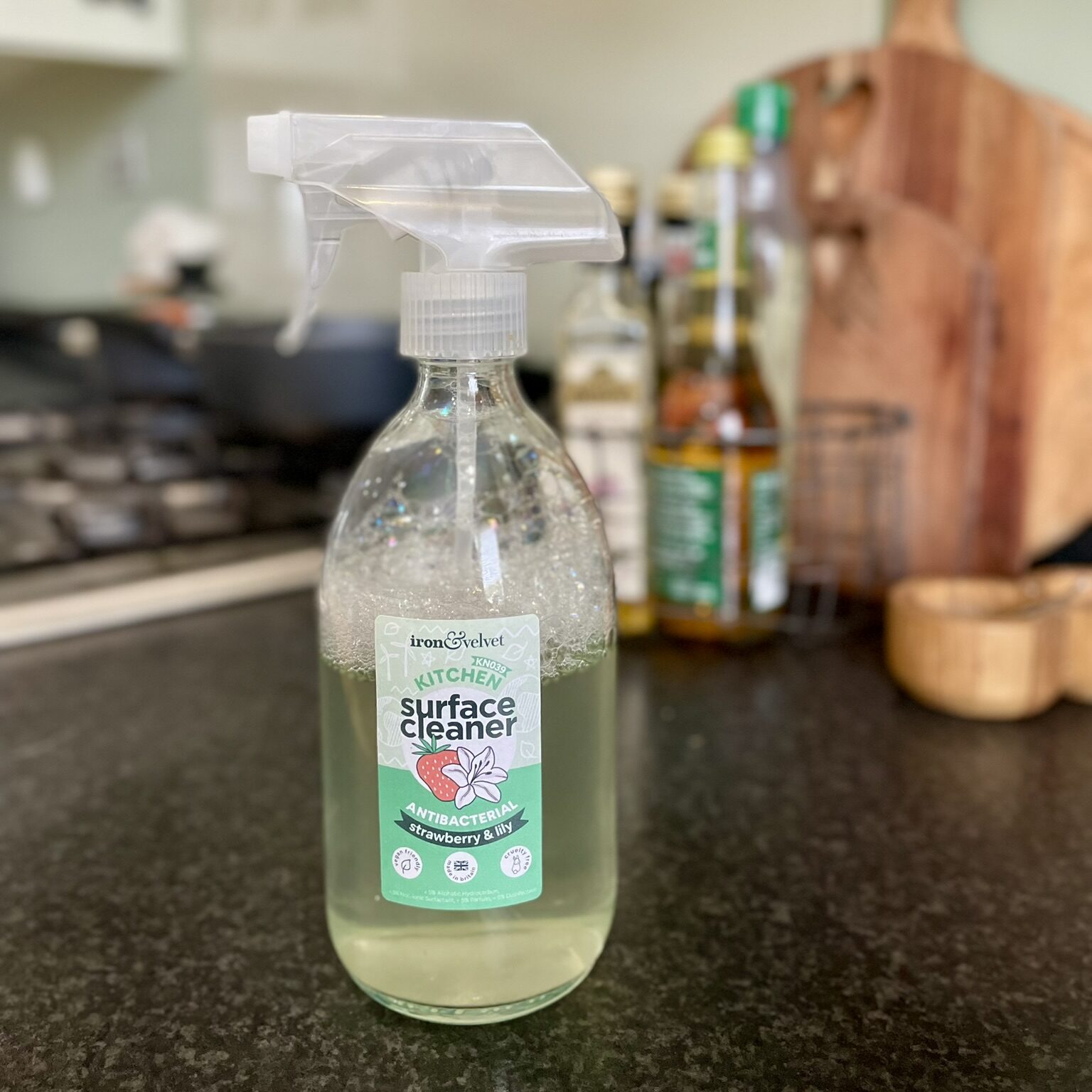Antibacterial Surface Cleaner: Our coconut and lime kitchen antibacterial surface cleaner works hard on those remnants baking can leave. Containing a tried and tested antibacterial agent, this cleaner will leave no trace of that dried food and grease, instead leaving a lovely smell.